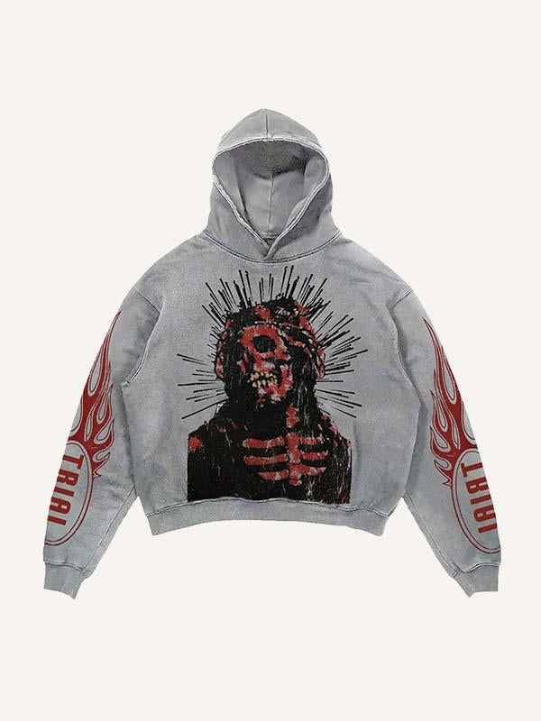 Skeleton Print Slant Pockets Hoodie