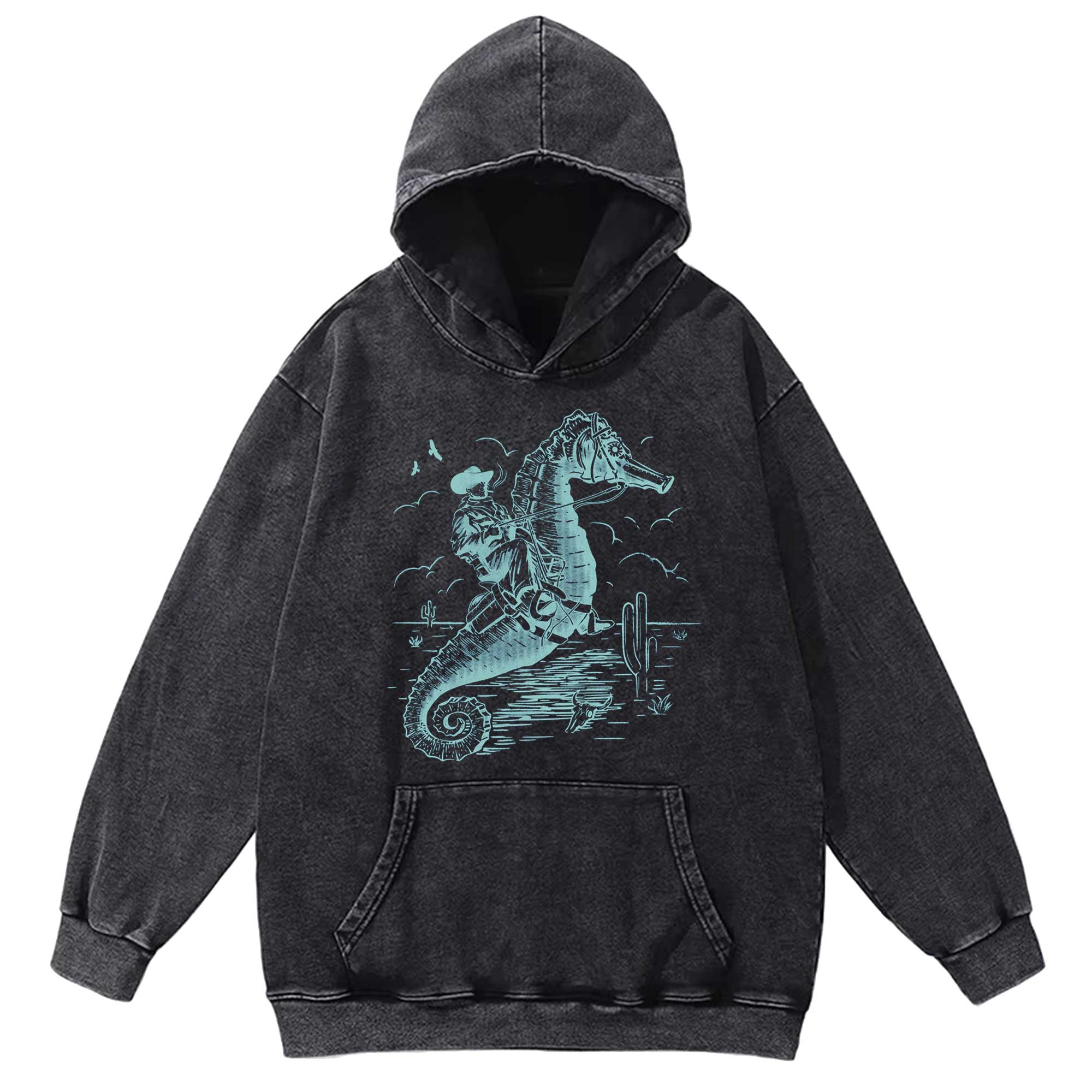 Cowboy Riding Sea Horse Washed Hoodie