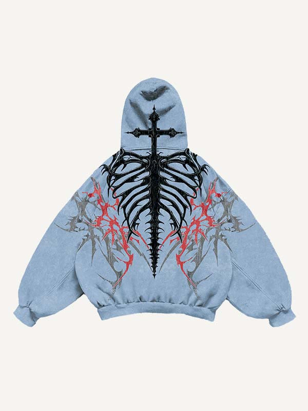 Cross&Skeleton&Graphic Print Slant Pockets Hoodie