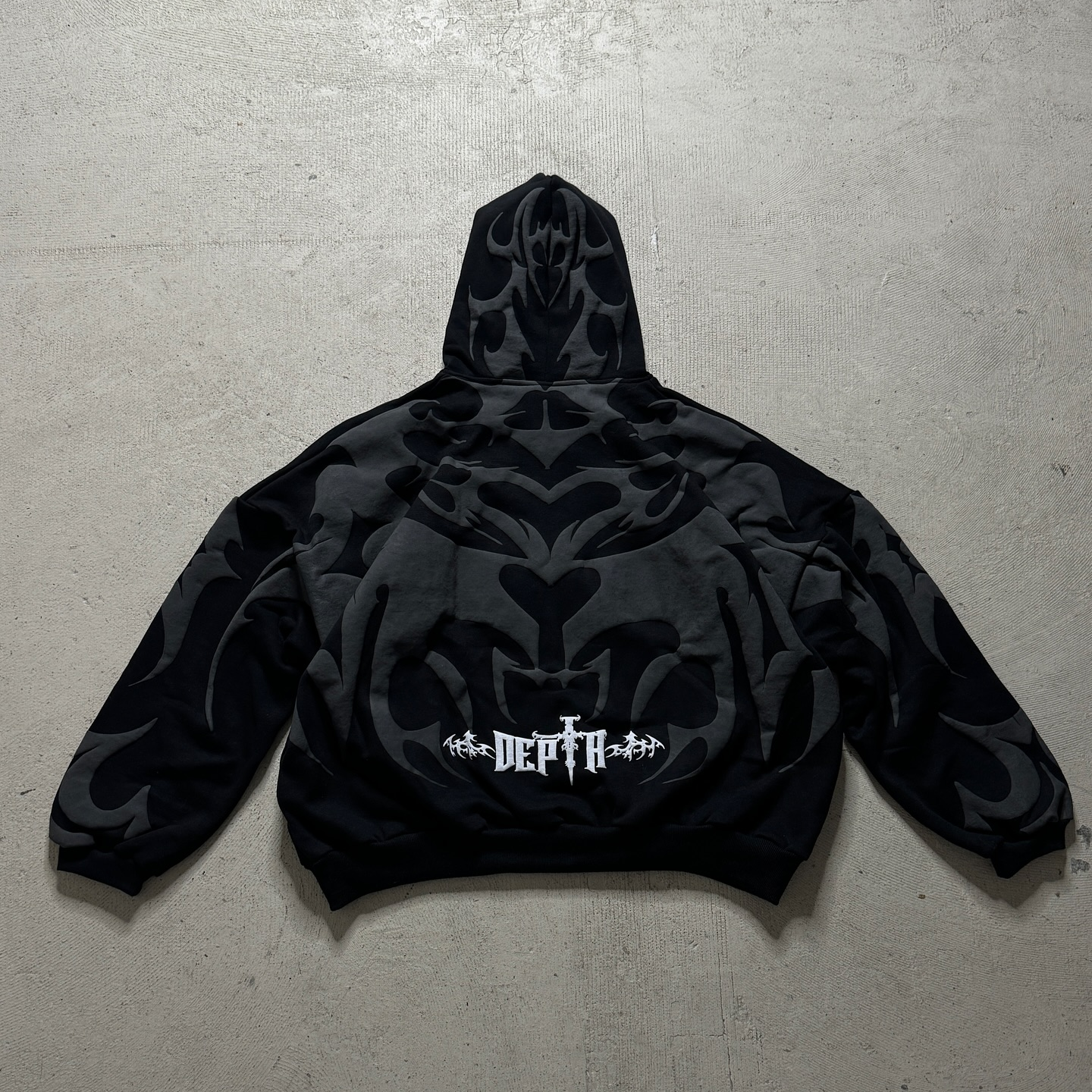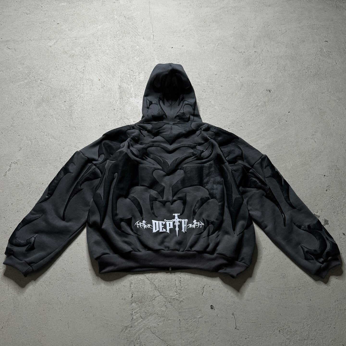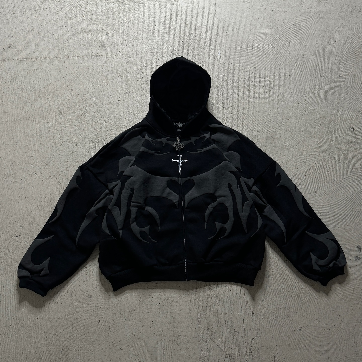 Gothic print contrast zip-up hoodie